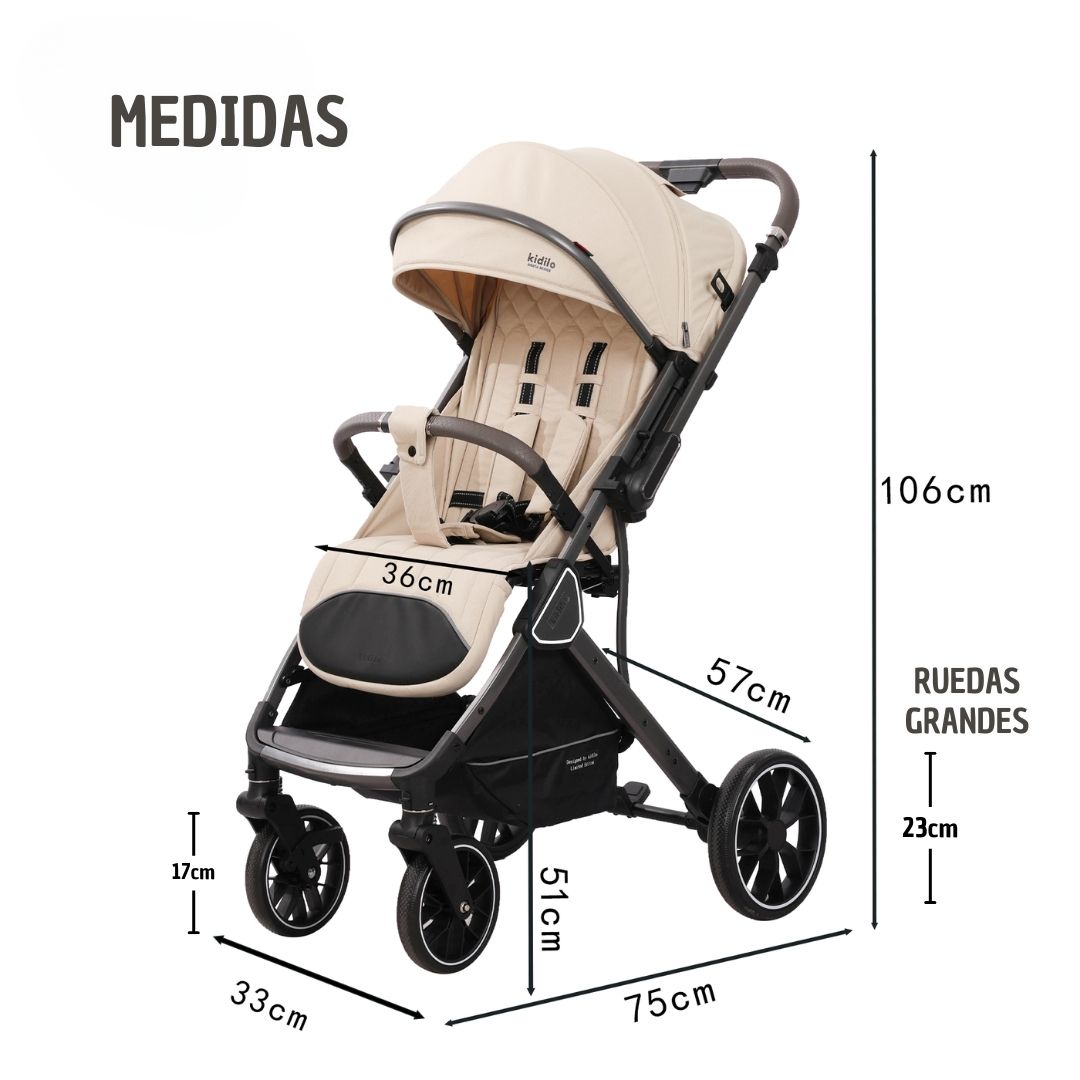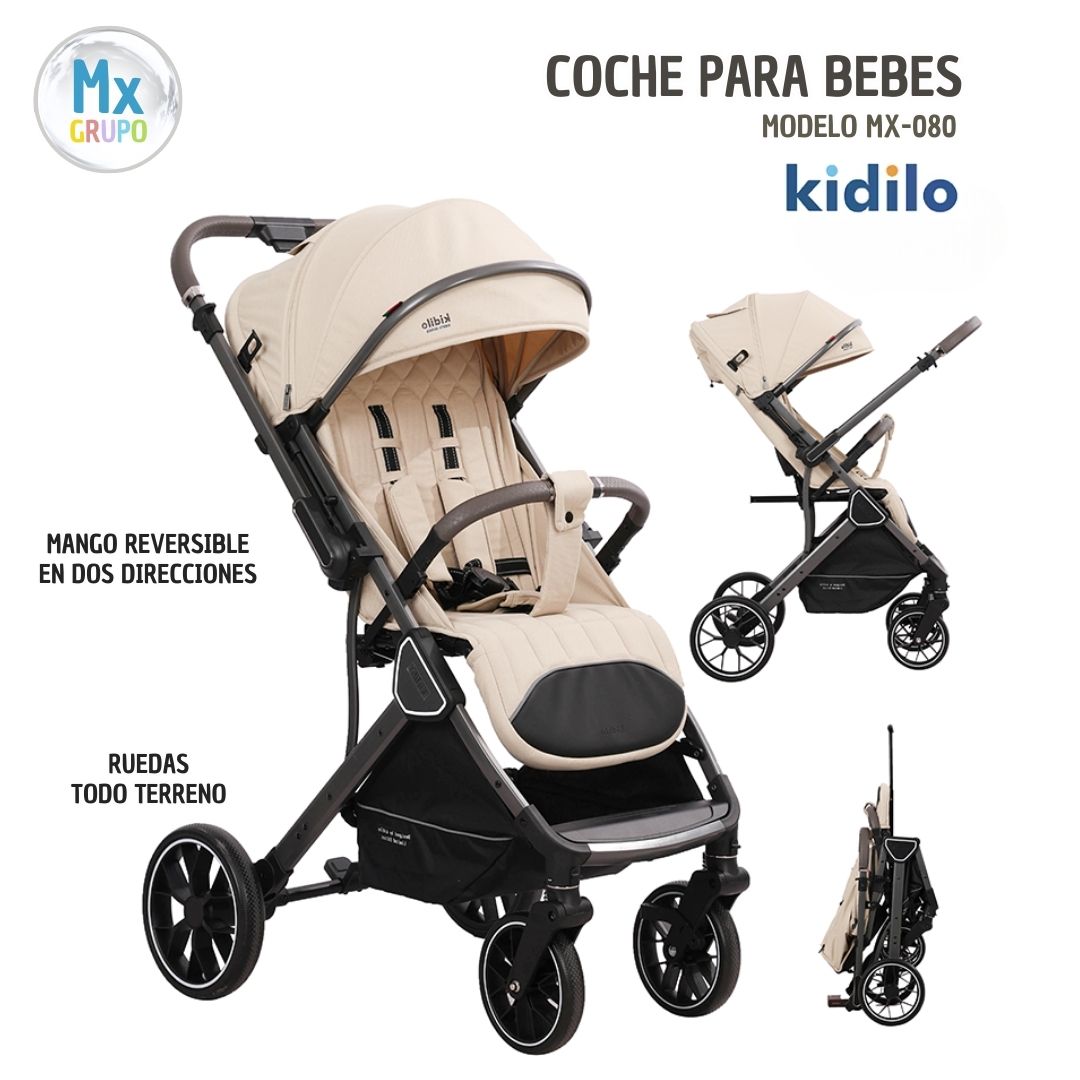Coche para bebes modelo Mx-080 marca kidilo, color beige. Incluye cubre pie. Coche compacto de fĂĄcil transporte, ideal para viajes. Las caracterĂsticas son:
