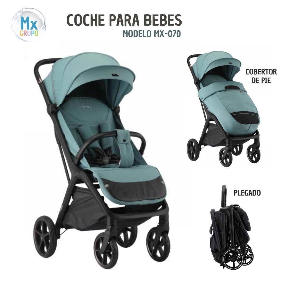 Coche para bebes modelo Mx-070 con cobertor de pie. Es un coche liviano de fĂĄcil transporte que se ajusta a tus necesidades para un viaje placentero. Las caracterĂsticas son: