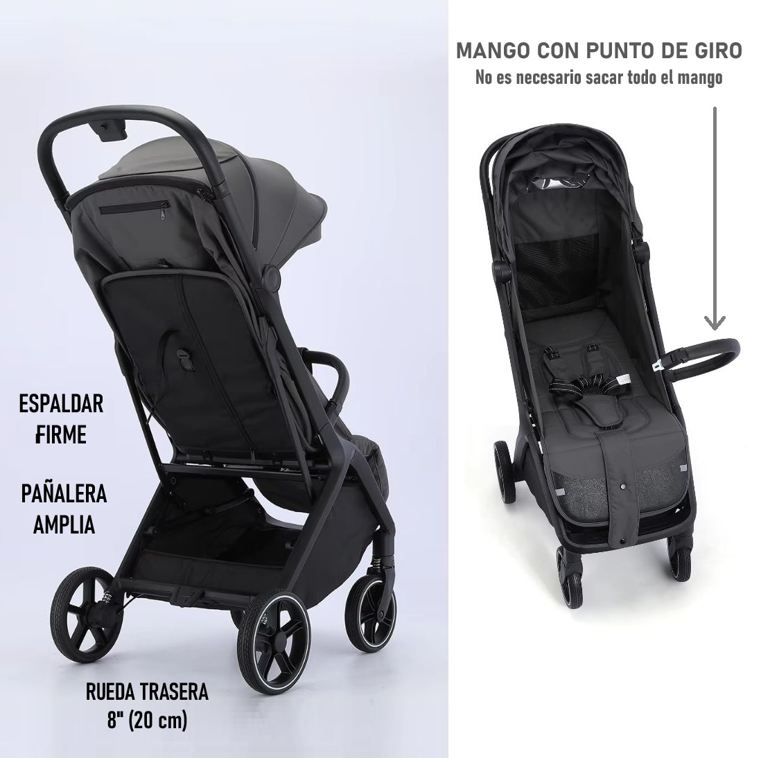 - El mango delantero tiene un punto de giro. Esto evita sacar todo el mango para levantar al bebe.