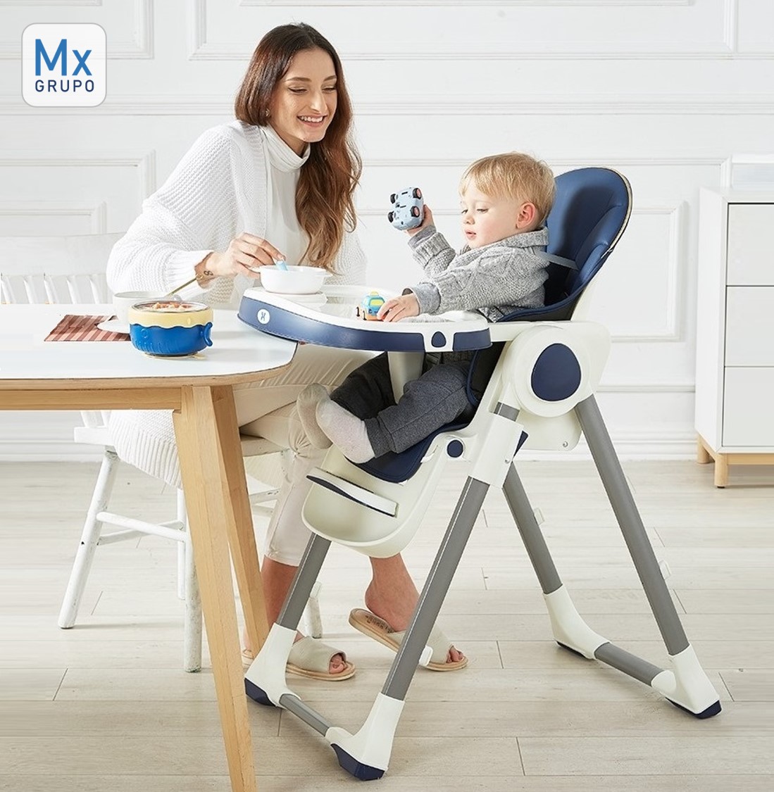 - DESCRIPCIÓN: Silla para bebes con diseño moderno. Tiene una bandeja grande y un asiento reclinable en varios ángulos para mayor comodidad del niño, además, es plegable para un fácil guardado. Incluye 04 ruedas y cojín.